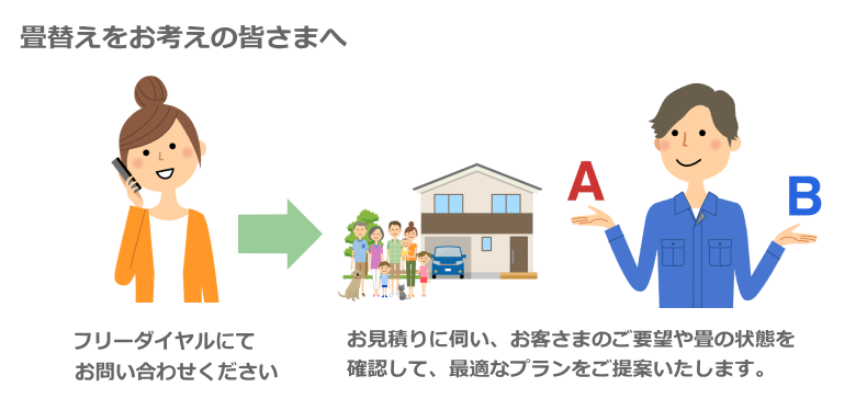 島田市大川町に畳屋として大正8(1919)年に創業。一世紀を超える間、お客様にご満足いただける仕事を心掛け、伝統と新しい技術を織り交ぜながら、毎日「畳」と向き合っています。 このホームページをご覧になられてのお問い合わせ、ご注文をお待ちしております。