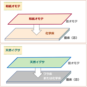 畳表の材質には「和紙オモテ」と「天然イグサ」の2種類があります。